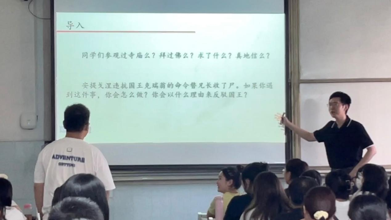 “礼云礼云,玉帛云乎哉?乐云乐云,钟鼓云乎哉?”“参观过寺庙么?拜过佛么?求了什么?真的信么?”诸如此类的导入语,从课堂的一开始便引发听者无穷求知欲,开启大家思考与发表意见的阀门,加之贯穿课堂的各种古今典故,如安提戈涅违抗国王克瑞翁的命令替兄长收尸,生动形象的将原本乏味的“国家起源”“神权法思想”知识点传授给员工。