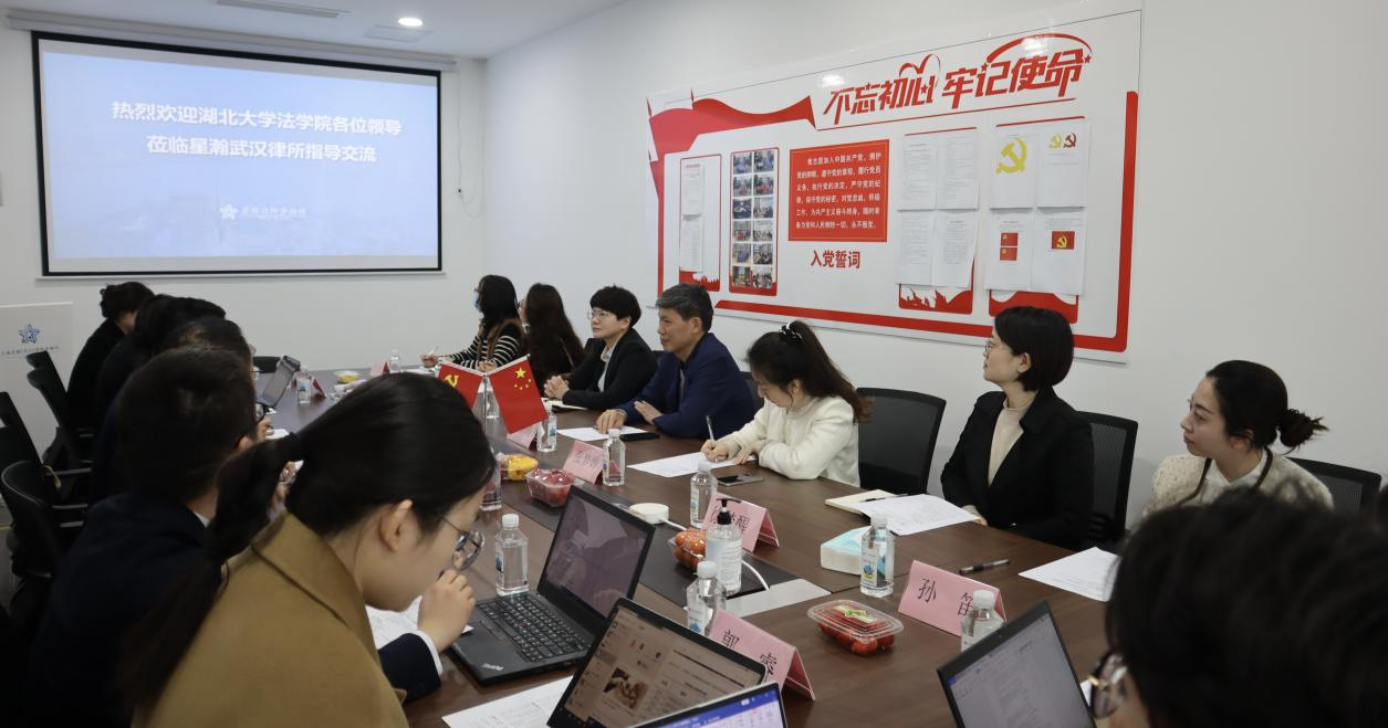 2023年3月7日上午,beats365官方网站法公司党委书记焦新曦一行赴星瀚武汉律师事务所开展“访企拓岗”,公司党委副书记张梦婵、副经理江岚、徐梦醒、张颖、孙笛老师等一同前往。星瀚武汉律所主任沈大力律师、合伙人曾曙光、周文洁律师及王恺杰、郭睿、王涛律师、律师助理周佳言以及部分实习生出席了本次交流活动。