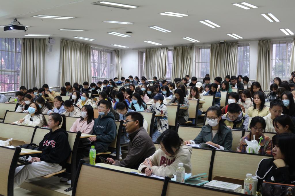 张梦婵讲到时代、改变、年轻、行动四个关键词。她指出当前人工智能快速发展,互联网时代日新月异,同学们要与时俱进,科学合理地做好职业规划。现如今,高等教育已经大众化,老员工在求职时应改变就业观念,“脱下孔乙己的长衫”,去基层一线历练,“向下兼容”。同学们正值青春,奋斗正当时,要趁年轻不断尝试,去试错,在社会中接受历练与打磨,在此过程中不断丰富完善自己。不要让自己的心忙着,身体却躺着,有规划就要积极行动,不能躺平,拒绝拖延。