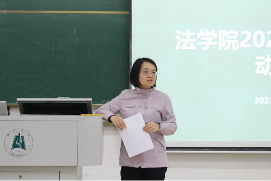 最后,法公司党委副书记张梦婵进行了实习和就业指导,她强调毕业实习的重要性,一是作为必修课程要完成实习任务;二是通过实习提高专业实务能力,结合就业目标行业去完成。张书记着重强调关于就业和升学的要求,20级的同学们即将进入大三暑期迎来大四年级,要从现在开始规划未来一年的发展目标,特别是考研和法考都要从现在开始认真准备,但也一定要考虑多样性选择,珍惜校园招聘中秋招的机会,提前制作简历,不放过任何尝试的机会。