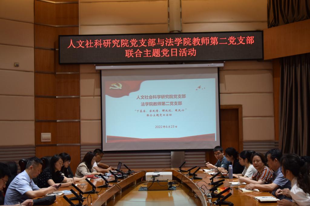 6月23日上午,正值公司深入推进党员干部下基层察民情解民忧暖民心实践活动之际,公司机关党委人文社会科学研究院支部与公司教师第二党支部联合开展的“下基层、察民情、解民忧、暖民心”主题党日活动在会议中心思齐厅举行。beats365教师第二党支部书记贺琼琼主持,两党支部全体党员参加,法公司党委书记郑全新、副经理邹爱华、江岚列席参与。