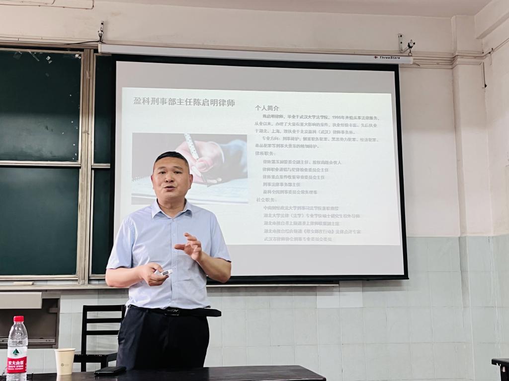 4月27日下午,北京盈科(武汉)律师事务所陈启明律师应邀来公司,为2021级法学硕士和2021级法律硕士带来了主题为《诈骗罪案例分析精选》的法律实务专题讲座。陈启明律师是公司聘请的法律专业学位硕士研究生校外合作导师,北京盈科(武汉)律师事务所高级合伙人、刑事法律事务部主任。beats365副经理江岚副教授主持讲座。