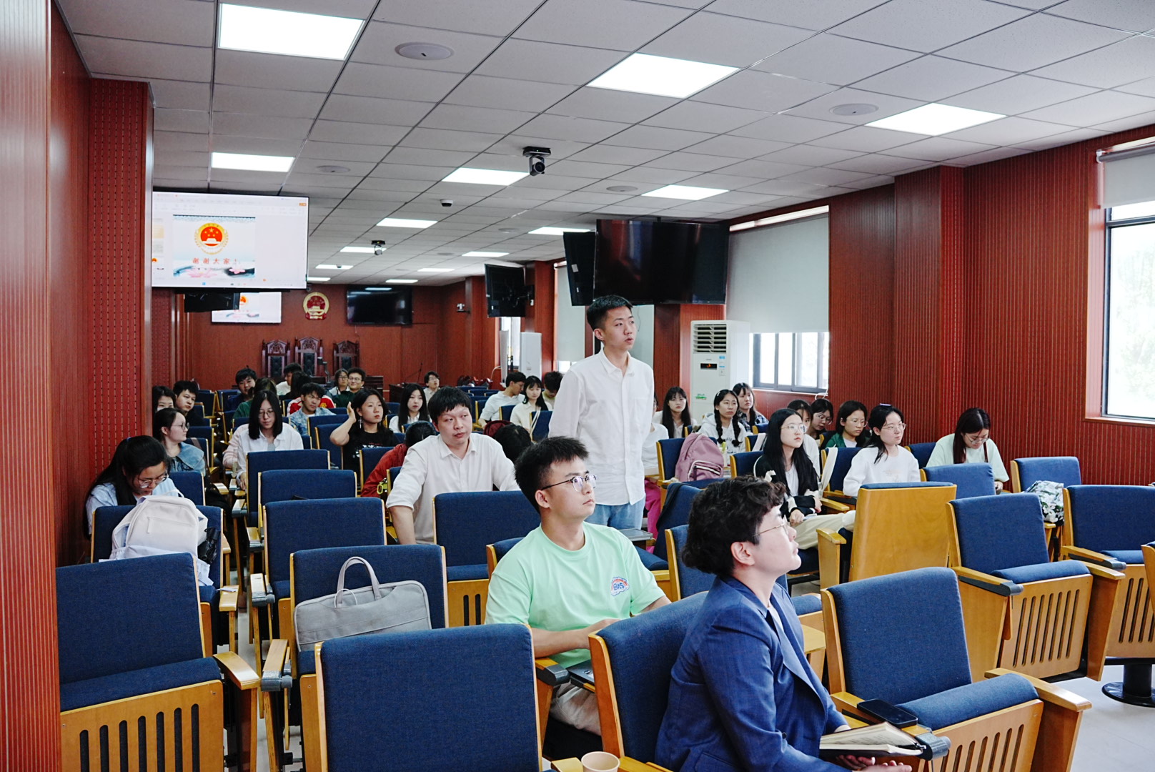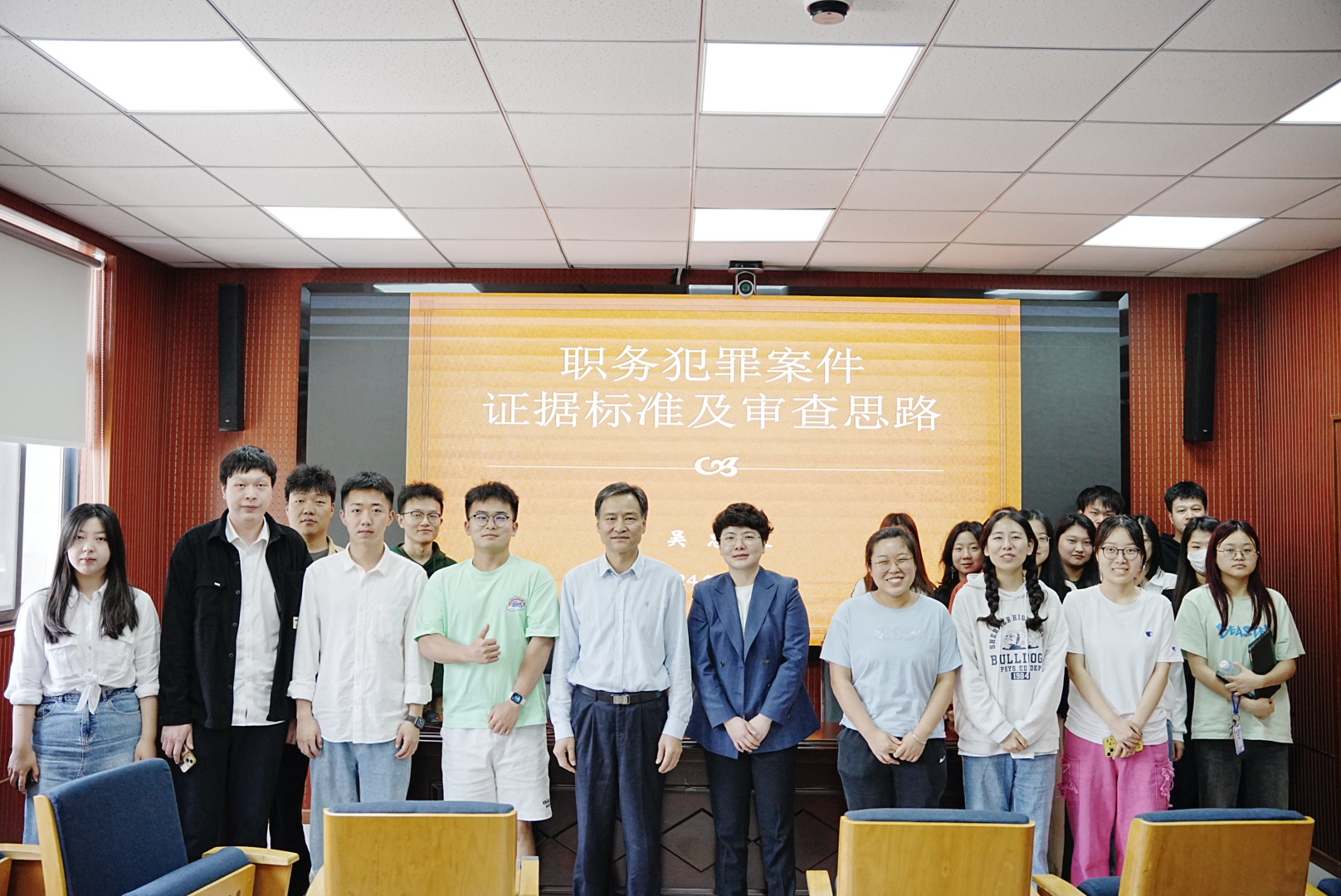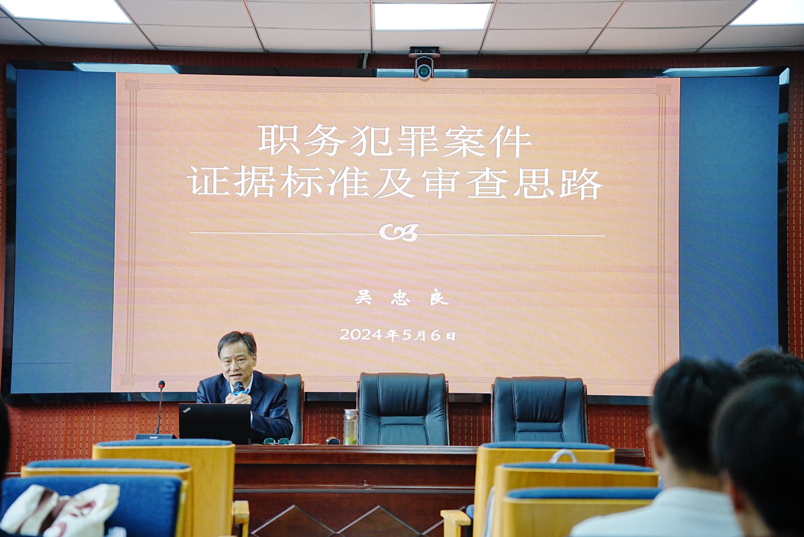 2024年5月6日上午,刑法学专题研究课程任课老师江岚特邀一级高级检察官吴忠良老师在beats365模拟法庭为2023级硕士研究生作“职务犯罪案件证据标准及审查思路”专题讲座,本次讲座由beats365副经理江岚主持。