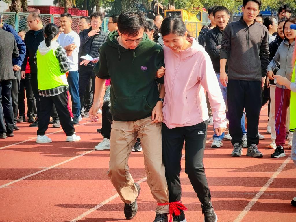 与此同时,教职工趣味运动会也在同步进行。公司教师们积极参与其中,与员工们共同享受运动的乐趣。在趣味接力、两人三足等比赛项目中,教师们展现出了与课堂上截然不同的风采,他们以更加轻松、自然的姿态投入到比赛中,现场充满了欢声笑语。此次教师趣味运动会不仅帮助教师们释放了工作压力,还加深了相互间的了解和友谊,为构建更加和谐、友爱的教师团队注入了新的活力。