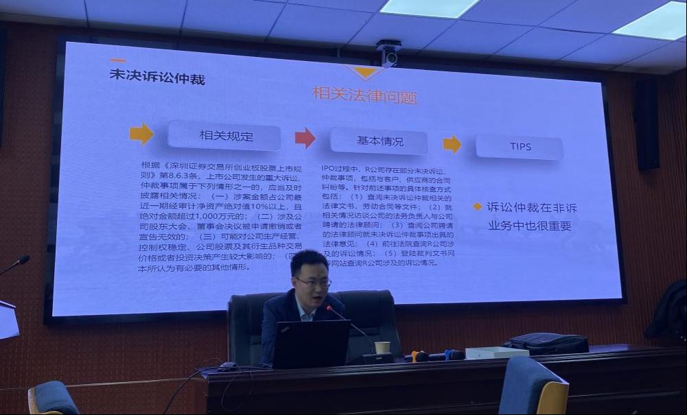 王昌杰老师引用《深圳证券交易所创业板股票上市规则》相关条文,结合近期热门的商业诉讼案例,分析了未决诉讼仲裁对企业生产经营、股价波动的影响。他还向员工们传授了在处理这类法律问题时的实用技巧,并教授如何精确评估诉讼或仲裁结果对企业可能产生的影响程度。