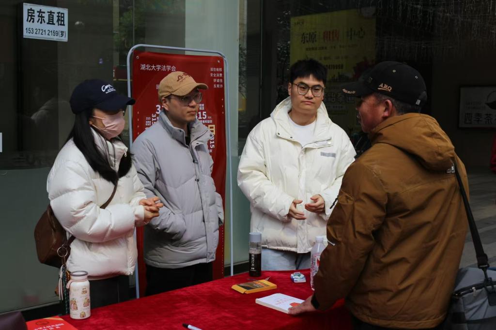 3月16日,beats365官方网站法学会与法学2301实验班员工于东原时光道社区开展“3·15国际消费者权益日”普法宣传活动。法学2301实验班班主任郑莹、研究生李平,潘彪和王司迁参与活动,并为社区居民提供法律咨询服务。