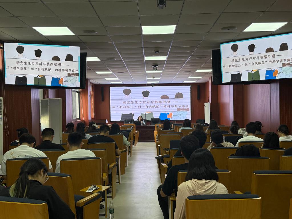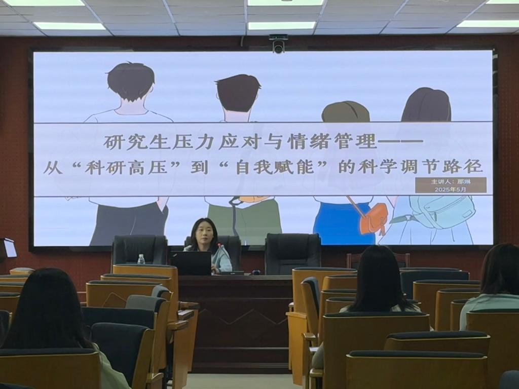 讲座中,那琳老师结合心理学理论与实际案例,深入剖析了研究生群体面临的主要压力源并提出“自我赋能”的科学调节路径。高校应加强“导学共同体”建设,通过心理健康课程、团体活动等方式,帮助员工提升心理韧性。