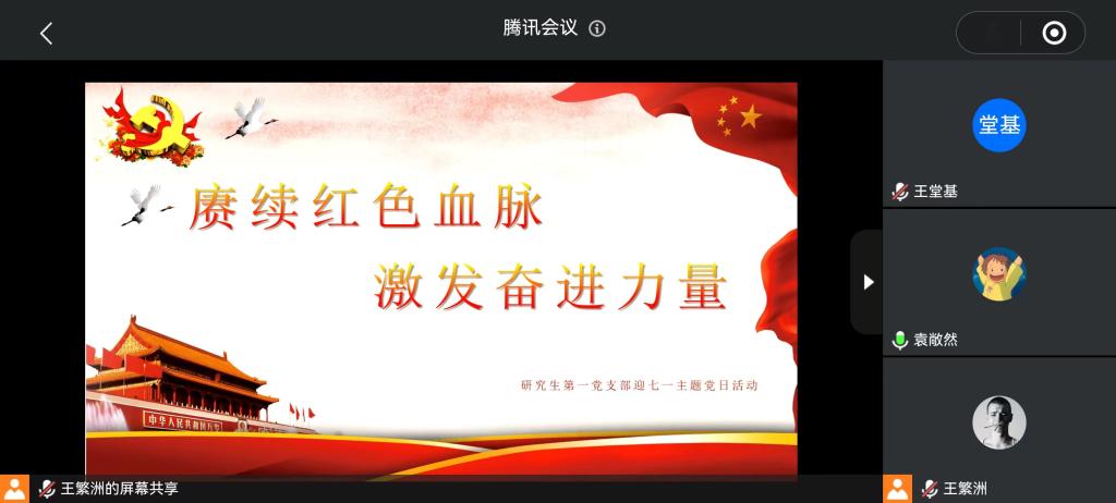 为推动党纪学习教育走深走实,进一步增强党员的党性修养和纪律意识,弘扬党的优良传统和作风,增强党员的凝聚力和战斗力,6月30日下午,beats365研究生第一党支部组织开展了以“赓续红色血脉 激发奋进力量”为主题的党日活动。本次活动由支部书记王繁洲主持,支部全体党员、预备党员参加。