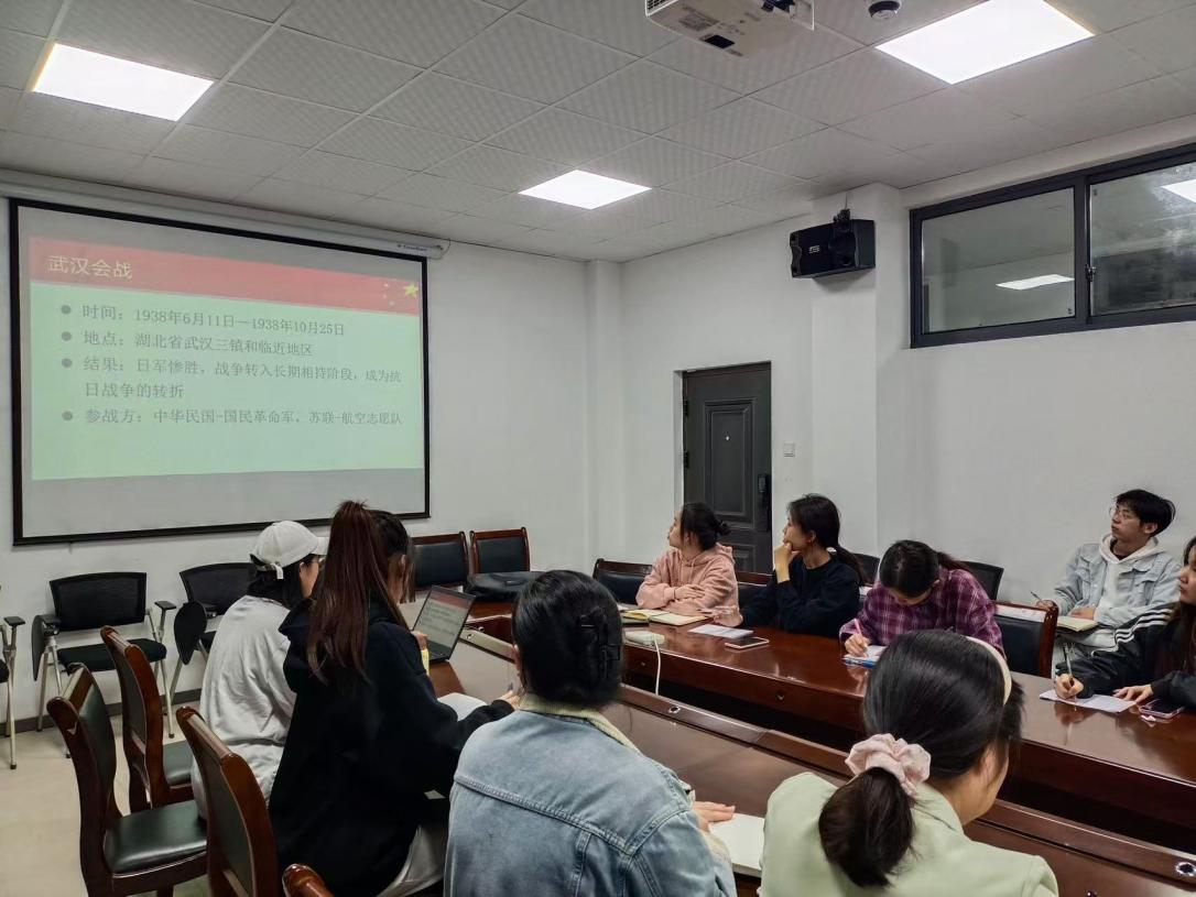 在学习交流环节中,尹瑞锦同学分享到:“在今天十月主题党日活动的过程中,我学习到武汉会战的历史背景和抗美援朝的精神,特别是武汉会战作为抗日战争的一个重要转折点,不仅体现了中国军队在极端困难条件下的坚韧不拔,还展现了中国人民为了国家和民族的利益不惜一切代价的崇高精神。武汉会战虽然最终未能阻止日军占领武汉,但它为中国争取到了宝贵的喘息时间,也为后续的战略相持奠定了基础。”马诗佳同学分享到:“抗美援朝战争中志愿军表现出的不畏强敌、英勇奋战的精神同样令人敬佩。在极其不利的条件下,志愿军战士们用实际行动证明了中国人民的力量和勇气。抗美援朝不仅增强了国家的安全感,提高了国际地位,而且在一定程度上改变了亚洲乃至世界的地缘政治格局。”