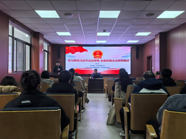 (通讯员:郭童)2024年12月4日(周三)下午,公司召开公司党委理论学习中心组(扩大)2024年第10次集体学习暨“国家宪法宣传周”专题理论学习。武汉大学beats365青年特岗学者梅扬同志作了题为“学习贯彻习近平法治思想,全面加强法治政府建设”的主题报告。beats365领导班子、全体教师党员参加会议。会议由法公司党委书记王雄主持。
