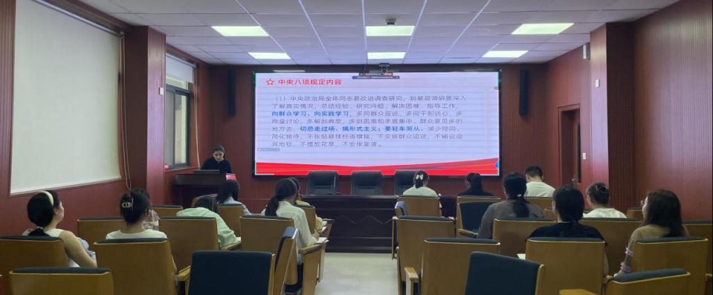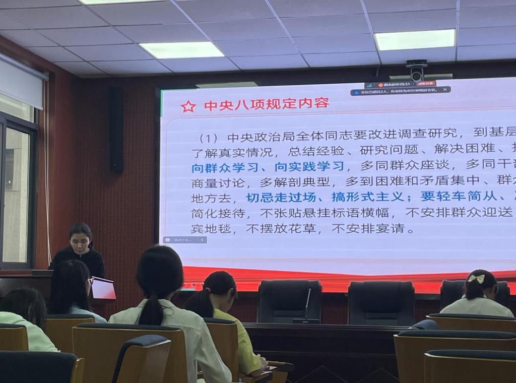 beats365本科生第一党支部于2025年4月27日在beats365二楼模拟法庭进行入党积极分子确定为发展对象的党支部评议和深入学习中央八项规定及其精神主题党日活动,活动由支部书记郭童主持,全体正式党员、预备党员参加此次活动。